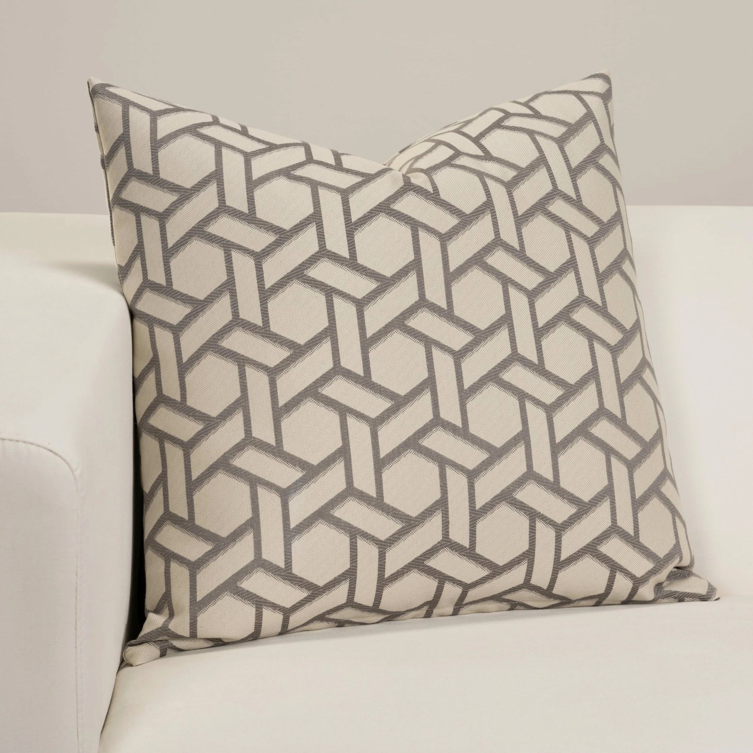 This perfect geo pattern jacquard pillow is a modern classic. A steel gray woven design sits on top of cream neutral base. This luxurious decorative toss pillow adds a modern finishing touch to your reading nooks, sofa and bed. A convenient zipper closure lets you easily remove the cover for cleaning, while a polyester-filled insert (included) within provides padding.