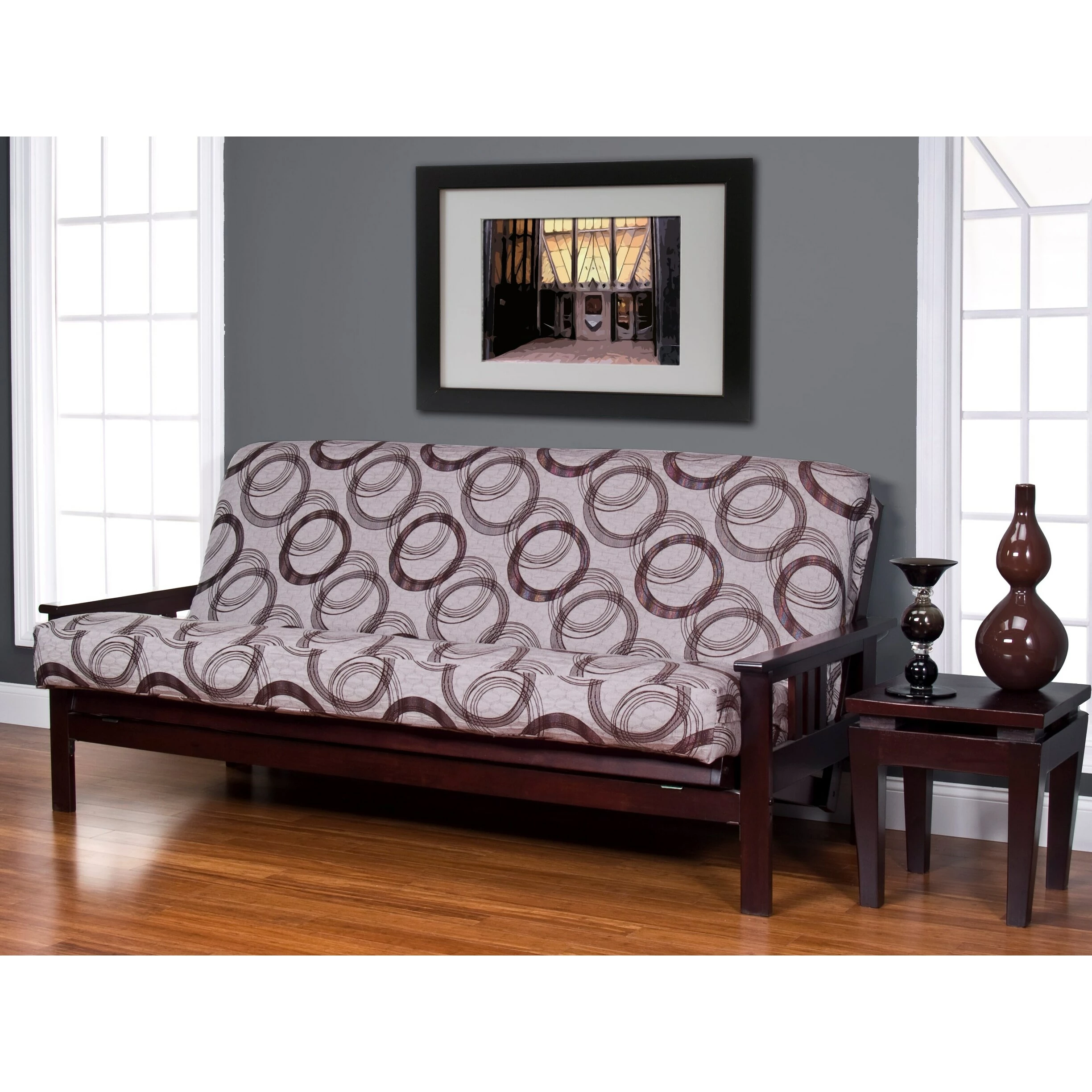 Adorn your futon with this Brandon futon cover and make a statement that is sure to impress. The modern, oversized metallic circles in the foreground demand your attention, while the grey tones create a subtle and serene backdrop. Made from a durable polyester and rayon blend, this futon cover features a three sided zipper closure for easy removal and machine washing. This cover will provide protection for your mattress. Use this futon cover to easily change up the look of your room.