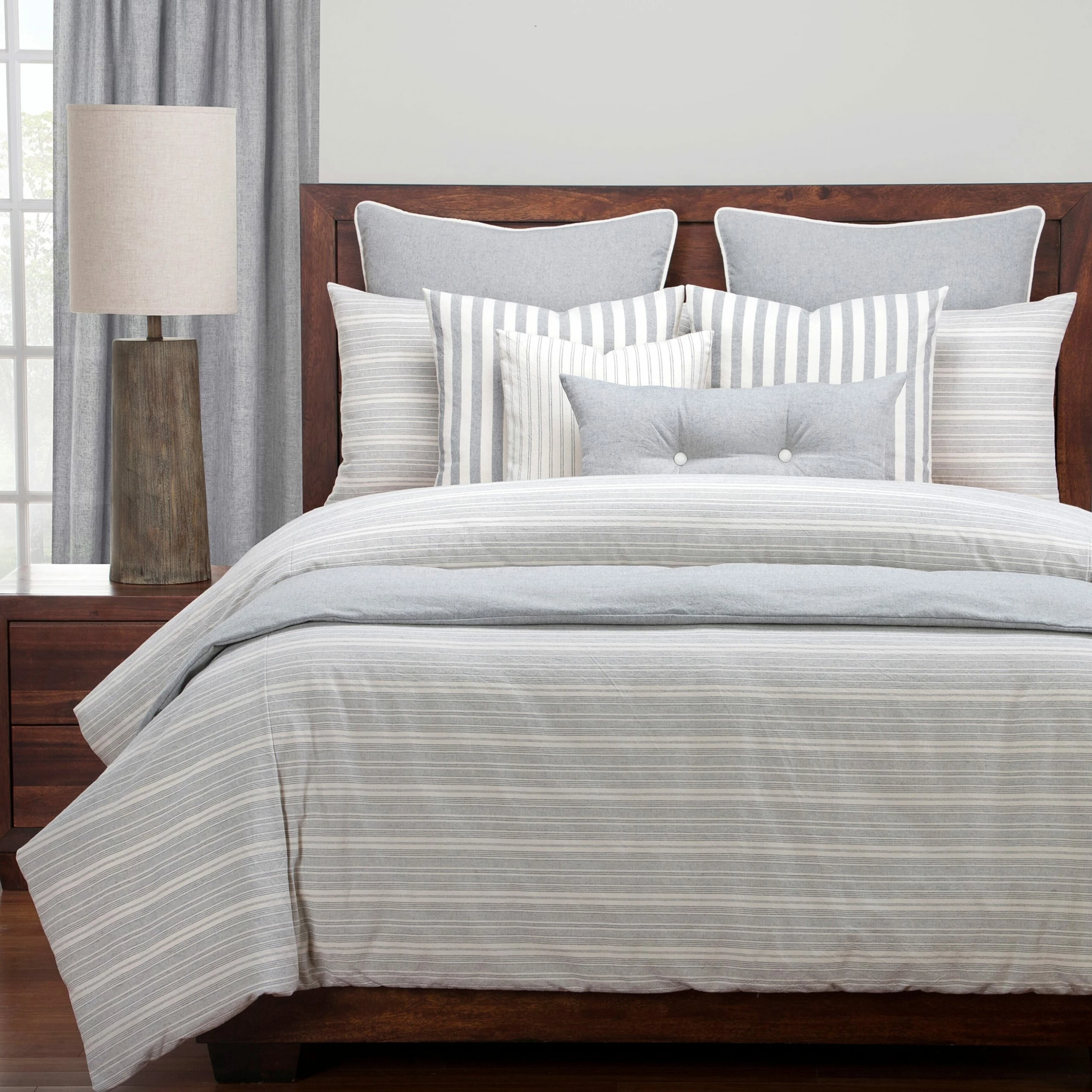 Update your favorite bedroom with simple stripes inspired by the French countryside that will make it easy to feel at home. This high-end farmhouse 3 piece duvet and sham set features hidden zippers on both the duvet and shams for easy removal and care. This duvet is backed with a soft, brushed performance microfiber to ensure a comfortable night’s sleep. Manufactured in the USA, resulting in remarkable quality that is made to last and will keep your bedroom beautiful for years to come. This set includes one duvet cover and two matching shams (one in twin set). The Duvet has eight buttons inside to hold your comforter in place. The Siscovers Ultra Soft and Eco-friendly Down Alternative Comforter has corresponding button holes that line up perfectly with the hidden buttons inside.Duvet Dimensions:Cal King: 104 inches x 100 inchesFull: 86 inches x 88 inchesKing: 104 inches x 98 inchesQueen: 94 inches x 98 inchesTwin: 67 inches x 88 inches Sham Dimensions:Standard: 26 inches x 20 inchesQueen: 30 inches x 20 inchesKing: 36 inches x 20 inches