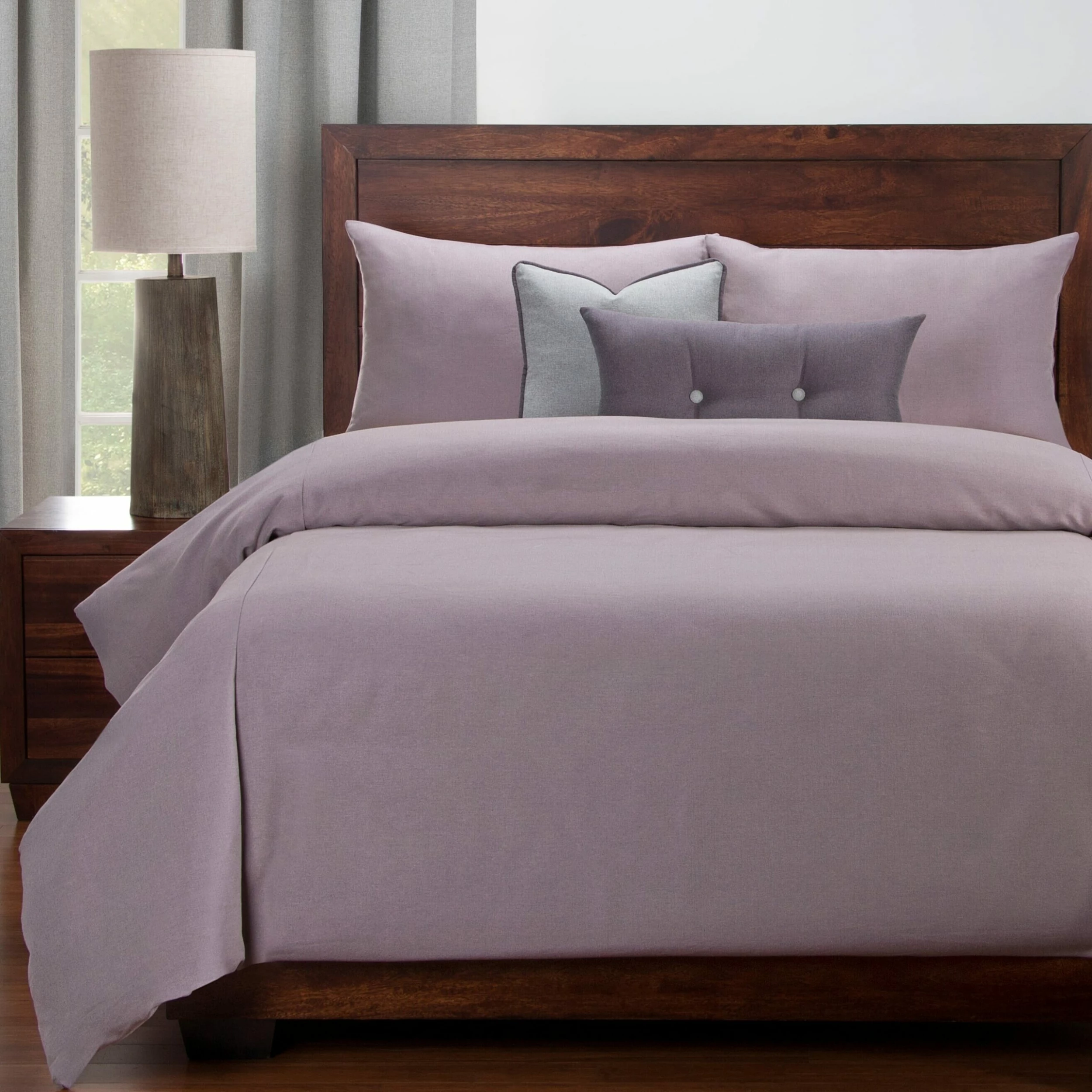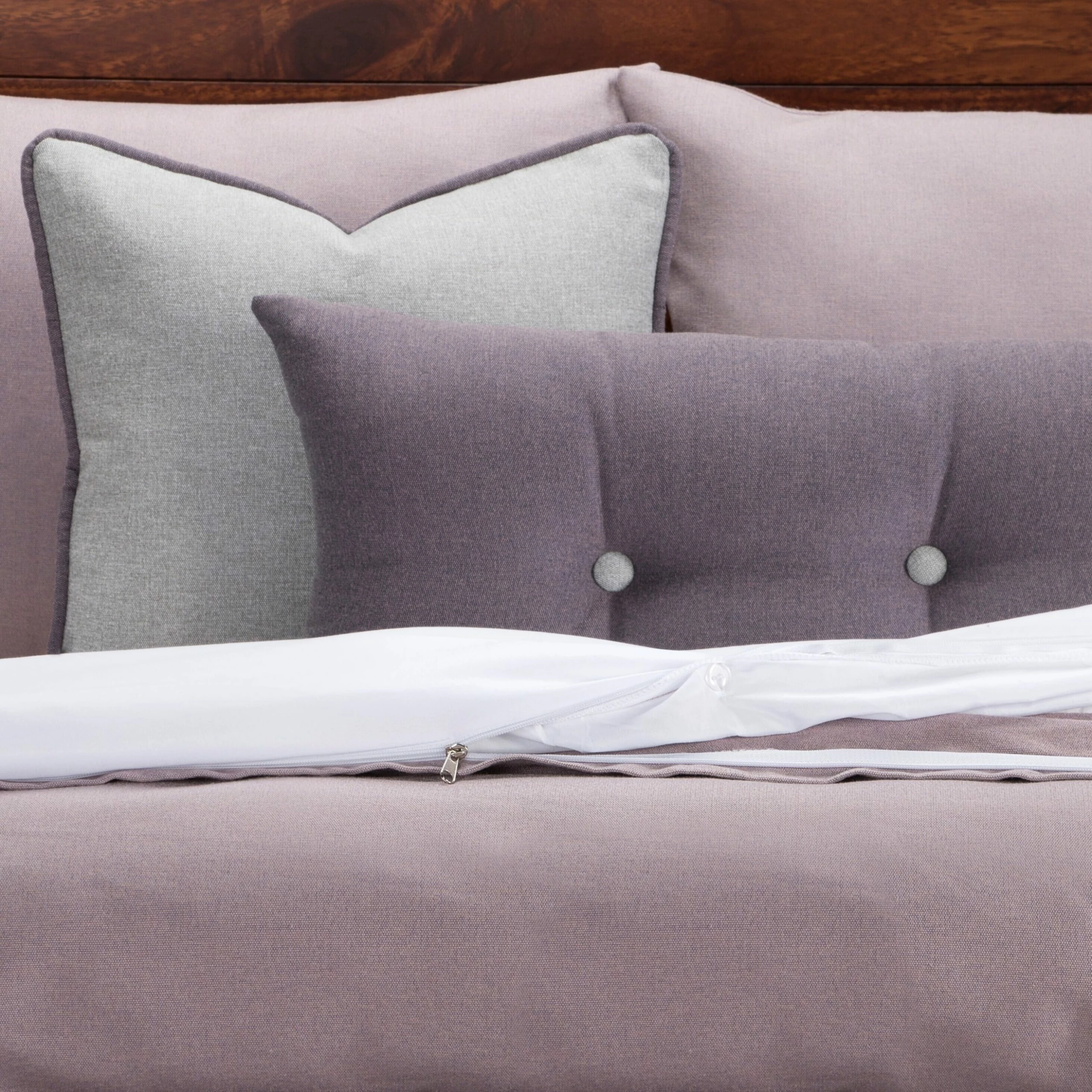 The soft purple featured on the Everlast Amethyst Luxury duvet set from Revolution Plus will add contemporary style to your bedroom. This Luxury 6 piece duvet cover set from Revolution Plus includes: One duvet cover, two pillow shams (one in twin set), one comforter, one 16″ x 16″ toss pillow and one 26″ x 14″ buttoned toss pillow. This set is made of 100% Polypropylene and is virtually unstainable bedding exclusively from Revolution Plus. Made of an innovative fabric that is inherently stain resistant and bleach cleanable; even the dark colors. This bedding is made in the USA with upcycled fibers and no chemical treatments making it easy on the environment. Life is messy, but paw prints, juice, wine spills and even permanent markers will disappear right in front of your eyes using just a bit of bleach and water.The duvet cover is backed with a luxuriously soft microfiber which pairs your maximum comfort with elegant style. The duvet cover and shams both have zipper closures for easy cleaning and the comforter buttons in 8 places to ensure it does not shift around while you sleep. This set is available in Twin, Full, Queen, King and California King.The duvet cover is filled with our eco-friendly down alternative comforter. Stuffed with a medium-weight fill made from recycled plastic bottles, this cozy comforter benefits your health and the environment when compared to natural down. The ultra-soft white polyester cover on this eco-friendly comforter cleans in the washing machine, making maintenance easy. This luxurious comforter is designed to keep you warm all year round.Features:? Duvet set with comforter included? Includes 1 duvet cover, 2 shams (1 in twin set), 1 comforter, 1 toss pillow and 1 buttoned toss pillow? Zipper closure? Classic style? Stain resistant ? Machine washable? Amethyst color? Twin, queen, California king, full or king sizeDuvet dimensions:? Twin: 67 inches wide x 88 inches long? Full: 86 inches wide x 88 inches long? Queen: 94 inches wide x 98 inches long? King: 104 inches wide x 98 inches long? Cal King: 104 inches wide x 100 inches longSham dimensions:? Standard: 26 inches wide x 20 inches long? Queen: 30 inches wide x 20 inches long? King, 36 inches wide x 20 inches long