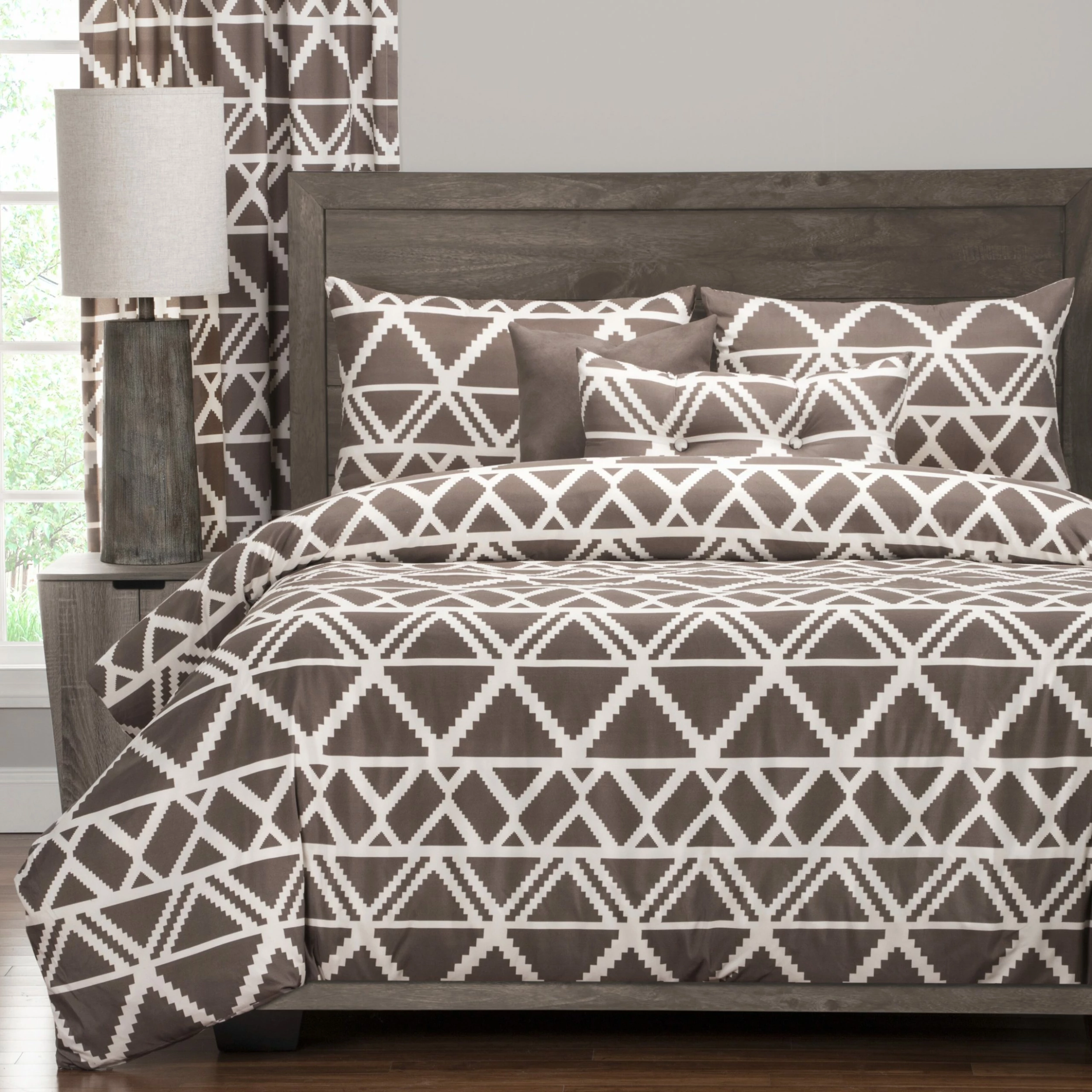 Featuring a gorgeous geometric design influenced by old world patterns and tribal motifs pattern, this Geo Tribe duvet cover set is sure to bring a unique, stylish look to your bedroom decor. A soft, brushed microfiber construction is backed with an ultra-soft sheeting material giving this lovely bedding the perfect combination of comfort and style. The duvet cover set comes with an eco-friendly down alternative comforter insert with a medium-weight fill made from recycled plastic bottles and will keep you warm all year round. The comforter has a polyester cover that cleans in the washing machine while the duvet cover and shams have a zip closure for easy removal and cleaning. The comforter also buttons in eight places to ensure it does not shift in the cover.