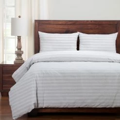 Simplify your farmhouse chic bedroom ensemble with this understated striped duvet cover and sham set. Tone-on-tone stripes offer subtle beauty on this soft microfiber set, and hidden zippers on both the duvet cover and shams offer easy use with a clean, seamless finish. Buttons inside the duvet cover help secure your comforter.