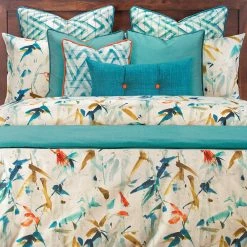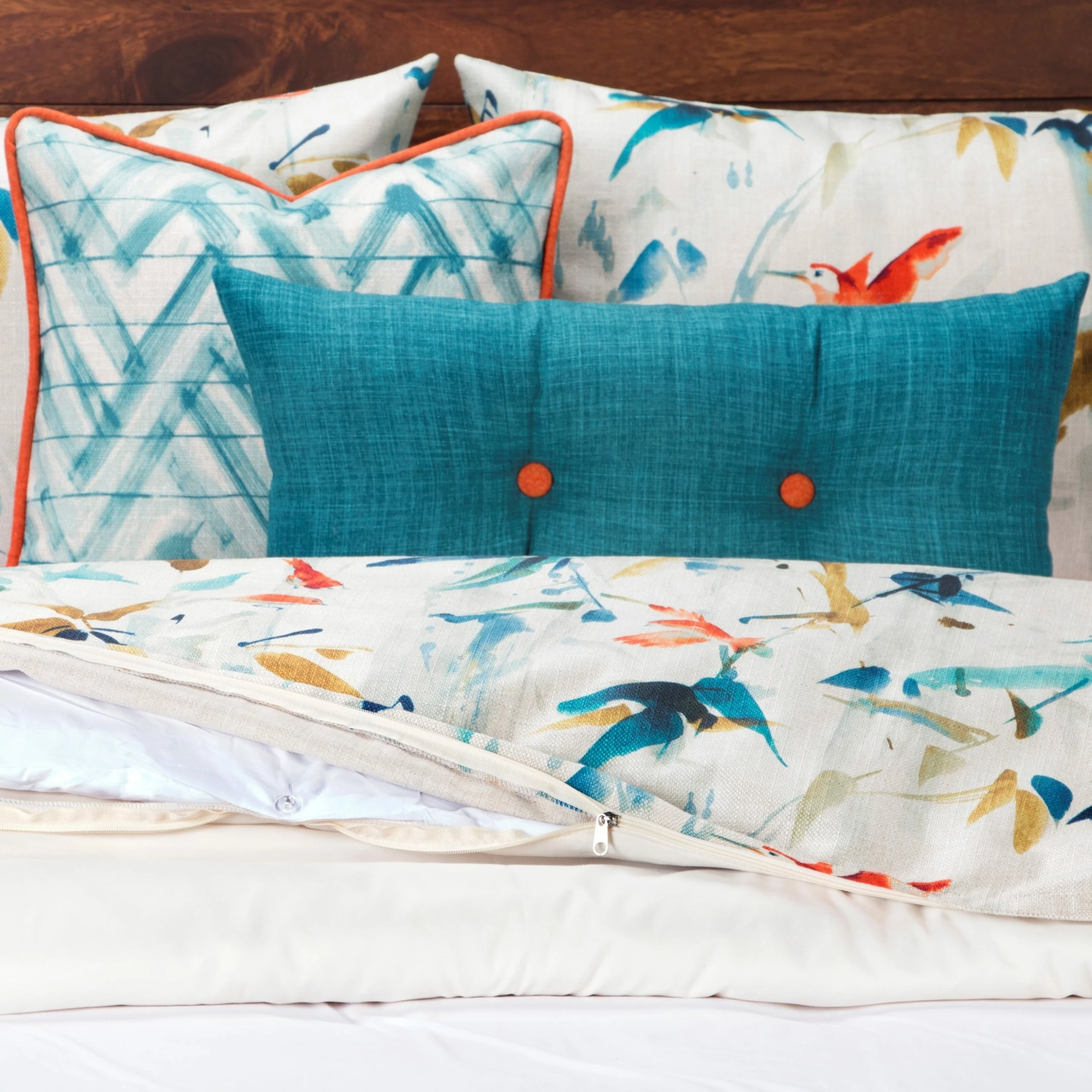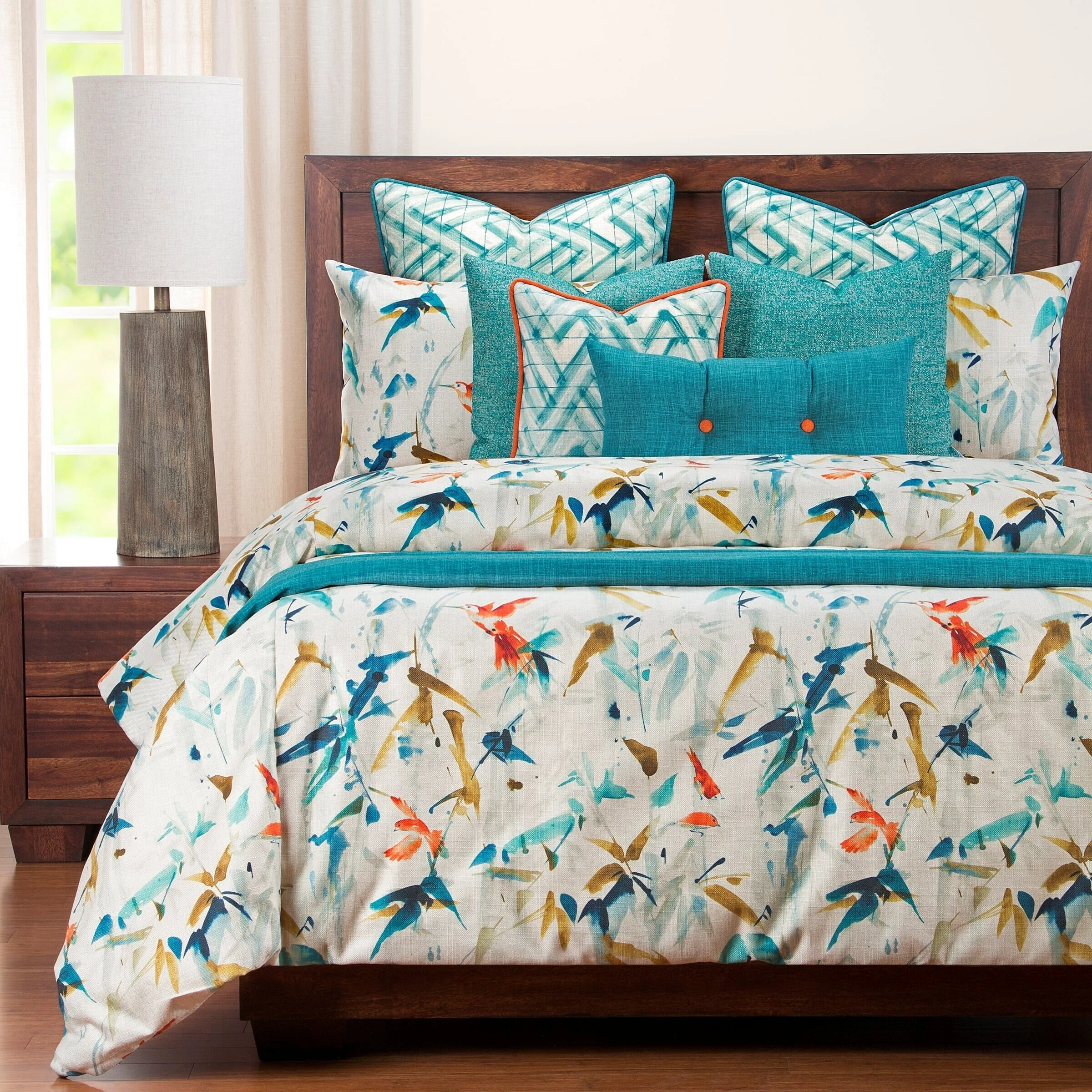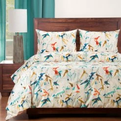 Featuring a beautiful artistic hummingbird pattern the 6 Piece Hummingbird Duvet Set from Siscovers will add high design into any room. The gorgeous set features one duvet cover, one comforter, two pillow shams (only one sham is included in twin set), one square toss pillow, and one rectangular toss pillow. The cozy set is handmade of an innovative polyester that is durable and functional while having high end appeal. This machine washable and luxurious set is backed with ultra-soft sheeting material that seamlessly blends comfort and style. Eight button ensure that the comforter is secured in the duvet cover, preventing shifting and bunching. The comforter is filled with an eco-friendly down alternative made from recycled materials. The rich color and coordinating pillows will add a touch of timeless appeal to your bedroom. This duvet cover set will help you transform your bedroom into the perfect escape.Β