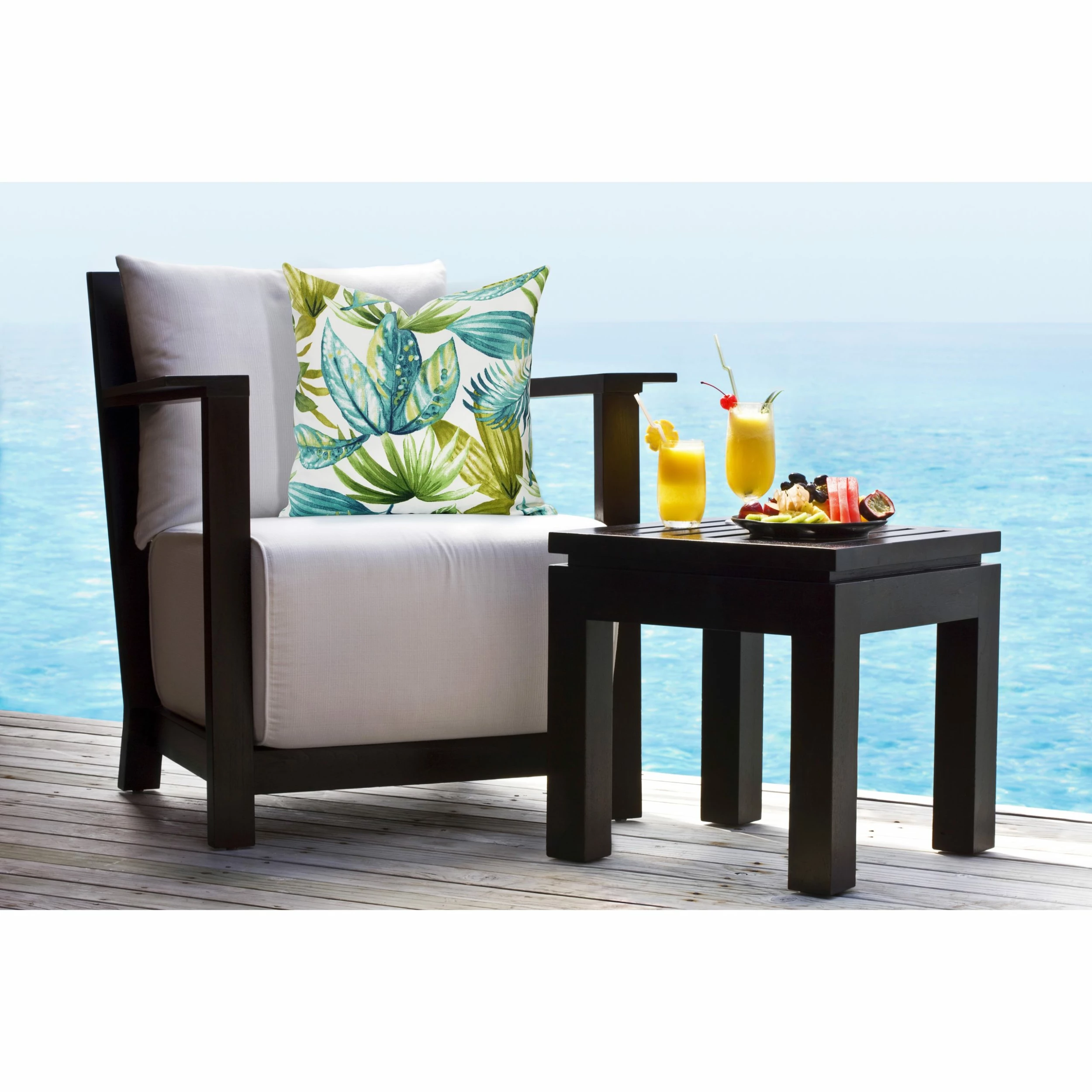 Set the scene of seabreeze, under the sun with this Solarium accent pillow by Siscovers. The tropical greens will make an impression. This accent pillow can beautifully transition with Spring, Summer or Fall, as it is UV/fade, mildew, water and stain resistant. Made durable and easy to clean with just soap and water. You can either brush off loose dirt and gently hose down, or for those stubborn stains prepare a solution of 1 cup of bleach and 1/4 cup of mild soap (such as Woolite or Dawn dishwashing liquid) per gallon of clean water. The solution should be sprayed on (do not soak) the face of the fabric and gently brush. Do not keep the solution on the fabric for more than 2 minutes before rinsing with cool water.