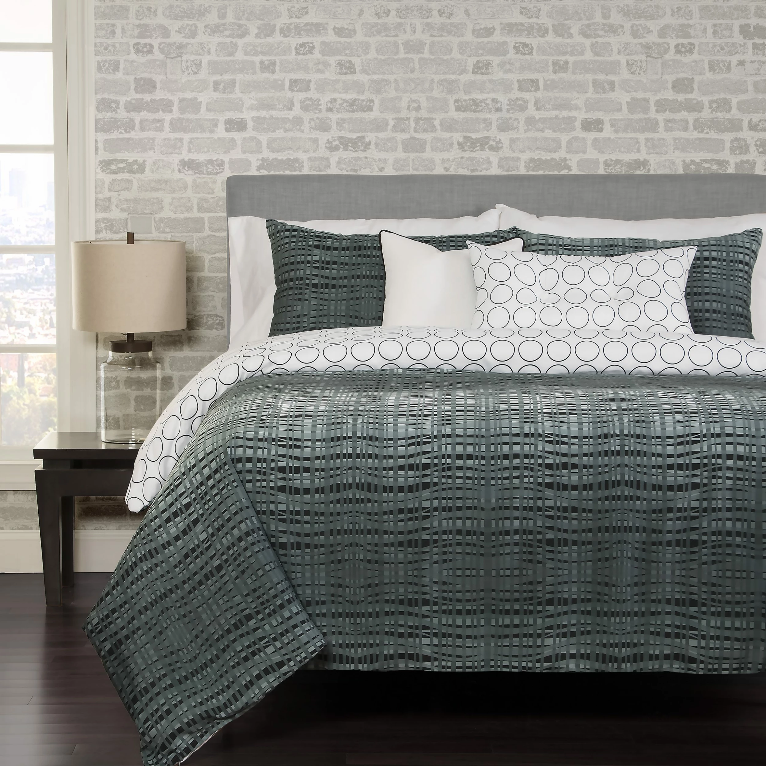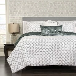 Bring a contemporary or rustic style to the bedroom with thefour-piece duvet cover set. The reversible cover has a pattern ofgeometric circles on one side for a modern look. Turn the coverover to display a basket weave pattern for a more organic decor.The set is made of 100-percent polyester and is machine-washable somaintenance is easy.