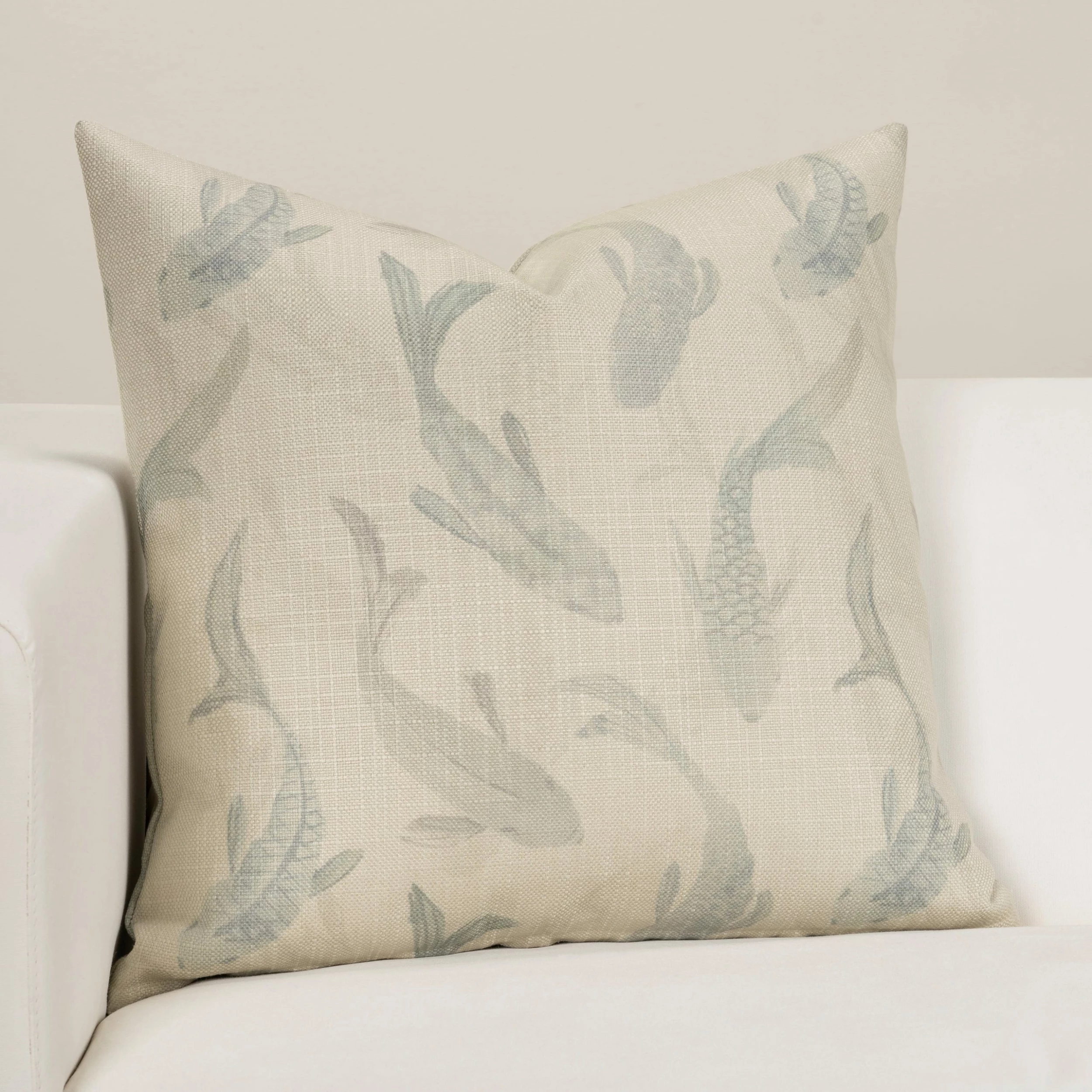 The vision of koi fish swimming can be both a mesmerizing and calming experience. Add to that comfort the artfully tranquil combination of soft herbal greens and natural linen. Toss it on your couch to bring some natural beauty, or keep it in your bedroom for a soft accent pillow to rest against during nap time. A convenient zipper closure lets you easily remove the machine-washable cover for easy care, while a polyester-filled insert (included) within provides padding.