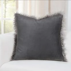 Relax with the charming look of this Llama throw pillow by Siscovers. The faux-fur front and fleece back offer luxurious softness, while the down alternative filling ensures comfortable support. The machine-washable construction provides easy and convenient cleaning, and the charcoal grey hue complements neutral contemporary and traditional settings.