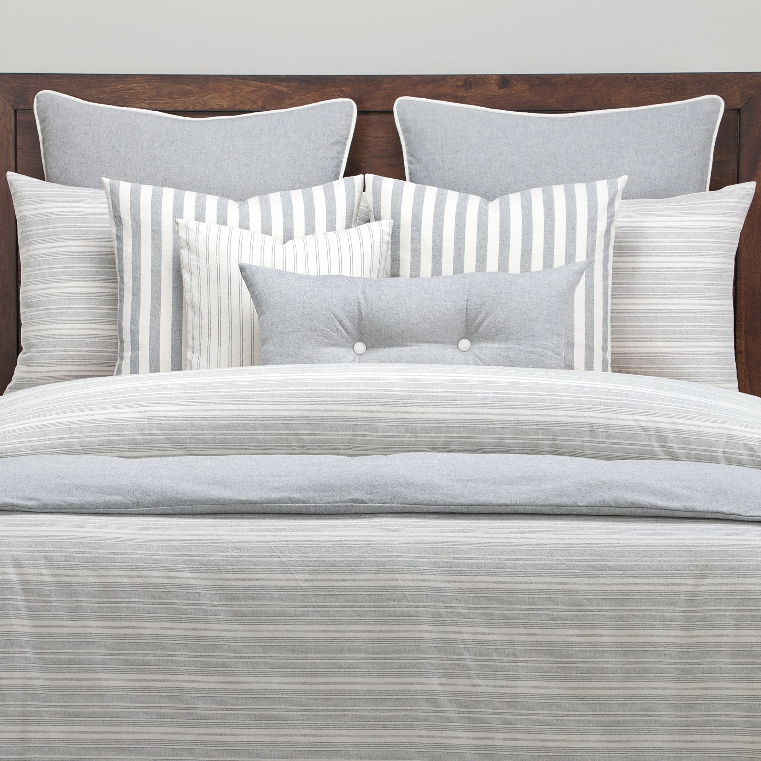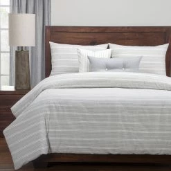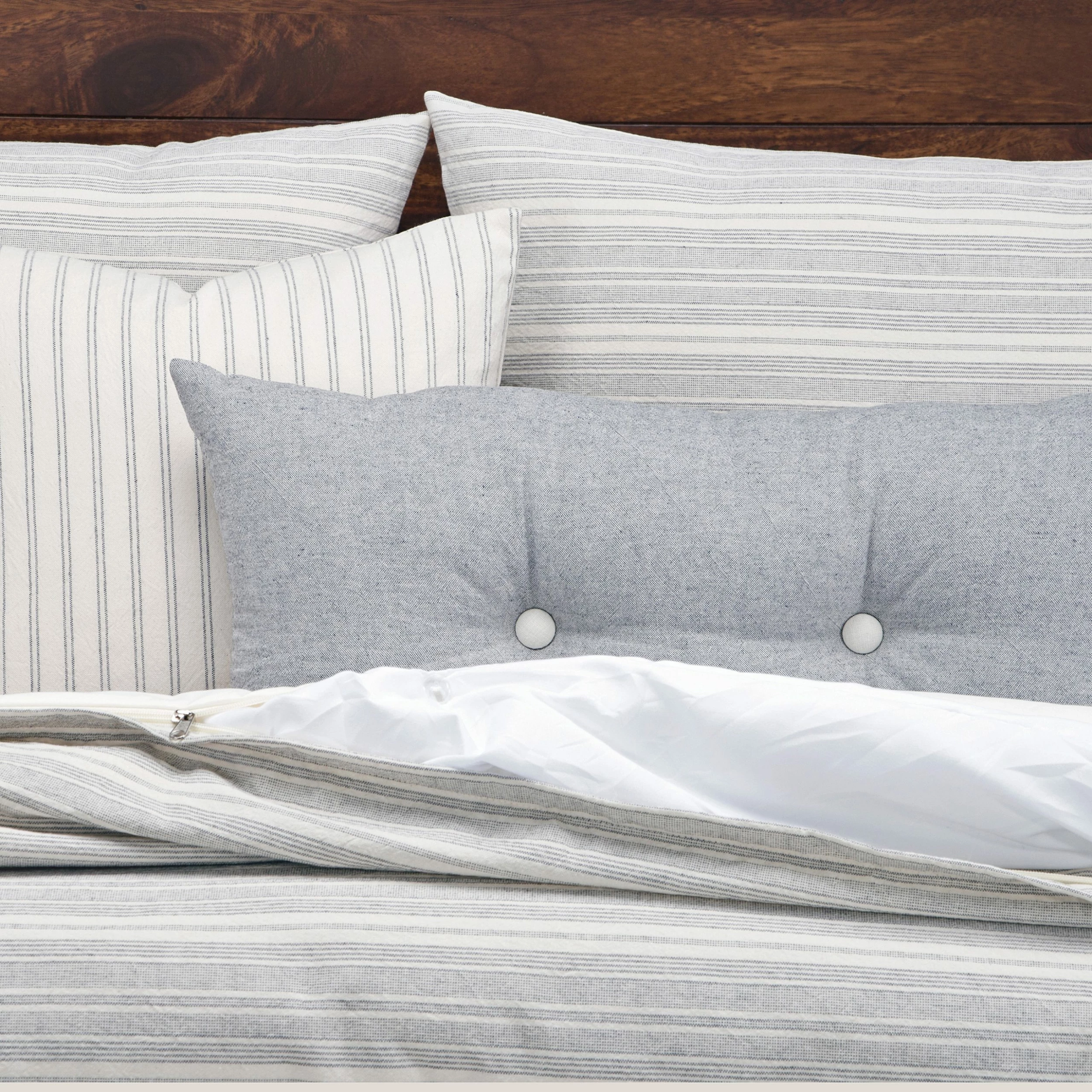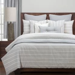 Natural and beautiful; this timeless ticking stripe bedding set from Siscovers transforms your room into a cottage getaway. The natural cotton construction and timeless ticking stripe will make this an instant favorite in your home. This High end set is machine washable and includes the following: One duvet cover, two pillow shams (one in twin set), one comforter, one 16′ x 16′ toss pillow and one 26′ x 14′ buttoned toss pillow. The duvet cover is backed with an ultra-soft sheeting material for added comfort. The duvet cover and shams have zipper closures for easy cleaning. The comforter buttons in 8 places to ensure it does not shift in the cover. This set is available in Twin, Full, Queen, King and California King. The duvet cover is filled with our eco-friendly down alternative comforter. Stuffed with a medium-weight fill made from recycled plastic bottles, this fluffy comforter benefits your health and the environment when compared to natural down.