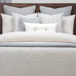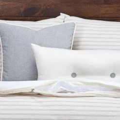 Bring home the timeless and coveted farmhouse look with this beautiful ticking stripe Duvet cover set from Siscovers. The natural cotton construction and timeless ticking stripe will make this an instant favorite in your home. The duvet cover is backed with an ultra-soft sheeting material for added comfort. The duvet cover and shams have zipper closures for easy cleaning. The comforter buttons in 8 places to ensure it does not shift in the cover. This set is available in Twin, Full, Queen, King and California King. The duvet cover is filled with our Eco-friendly down alternative comforter. Stuffed with a medium-weight fill made from recycled plastic bottles, this fluffy comforter benefits your health and the environment when compared to natural down. The ultra-soft polyester cover on this comforter machine washable for added convenience.