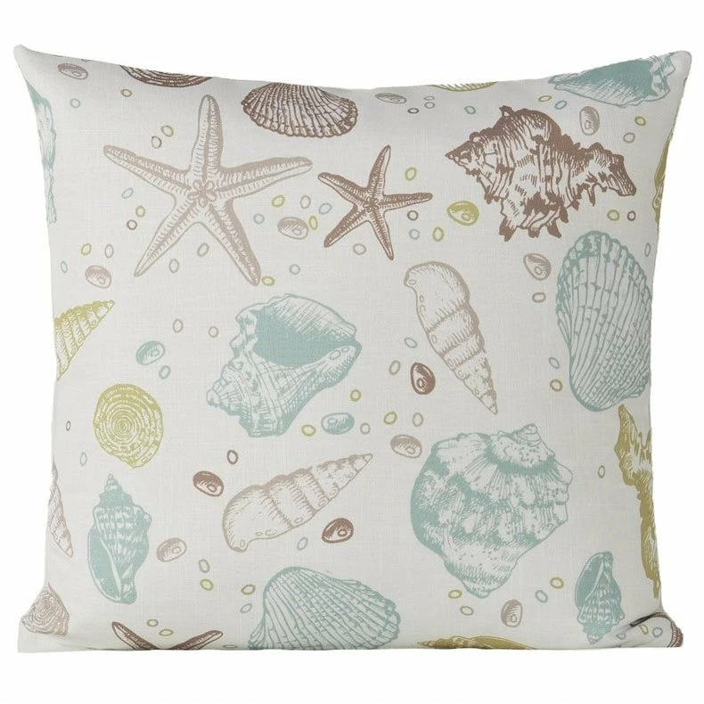 The Marine Life printed throw pillow by Siscovers pictures a shell collection in seafoam, sand and golden rod, that evokes the calming sensation of walking barefoot along the beach. A unique colorfast design, printed on a linen weave made from 100% polyester. Easy-care, machine wash and tumble dry.The construction of the pillow sham includes a zipper flap and an easy-zip closure along the bottom of the pillow. Unzip the sham to remove the insert for laundering purposes or for changing out your shams for seasonal decor. The included pillow insert is stuffed with 100% polyester fiberfill made from recycled materials. The non-allergenic insert stays soft and is machine washable.