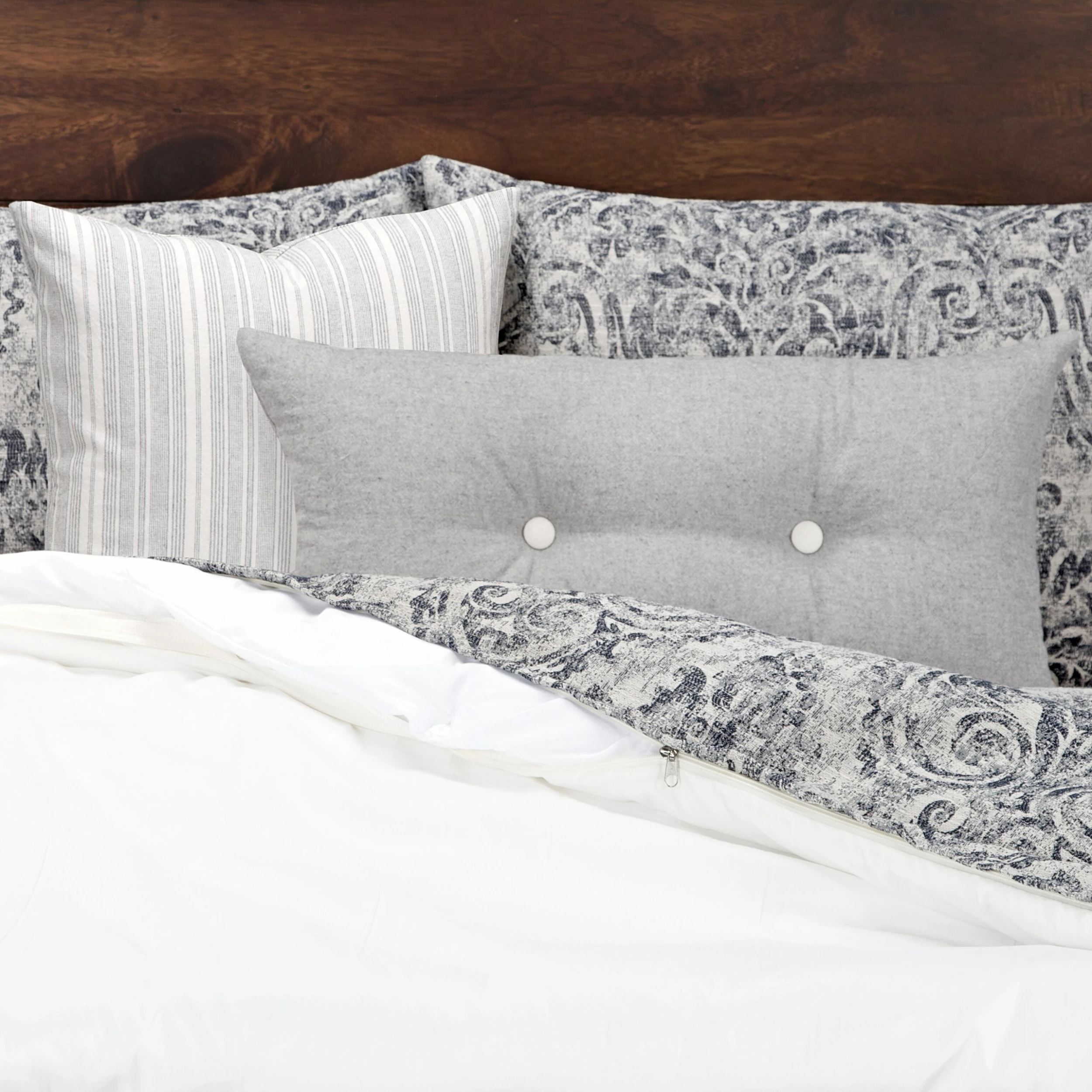 Update your bedroom with the soft, French countryside inspired Misty River cover set from Siscovers. This High end set includes the following: One duvet cover, two pillow shams (one in twin set), one comforter, one 16″ x 16″ toss pillow and one 26″ x 14″ buttoned toss pillow. The duvet cover is backed with an ultra-soft sheeting material for added comfort. The duvet cover and shams have zipper closures for easy cleaning. The comforter buttons in 8 places to ensure it does not shift in the cover. This set is available in Twin, Full, Queen, King and California King. Β The duvet cover is filled with our Eco-friendly down alternative comforter. Stuffed with a medium-weight fill made from recycled plastic bottles, this fluffy comforter benefits your health and the environment when compared to natural down.