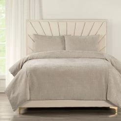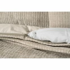 Cushiony tectural stripes, with a soft velvety cut pile, invite calm into your space with the Seagrass Bedding Collection by Siscovers. Made with 100% Polyester, this fabric is machine washable for easy care!Pieces in the set:β’ Duvet cover with zipper closureβ’ Down alternative comforter buttoned inside duvet cover (8 buttons)β’ Two bed-pillow shams with zipper closures (bed-pillow inserts not included) (twin has one sham)β’ One 16″ x 16″ toss pillow (pillow insert included)β’ One 26″ x 14″ toss pillow (pillow insert included)The duvet cover is filled with an eco-friendly, ultra-soft down-alternative comforter. The medium-weight comforter is made with poly-fill derived exclusively from recycled plastic bottles. The white polyester comforter is machine washable and tumbles dry for easy maintenance. This luxurious comforter is designed to keep you at the perfect temperature all year round. Also, the duvet cover and pillow shams feature zipper closures, to keep your bed looking neat and tidy all the time and for easy opening and closing. The duvet cover features an innovative no-shift design. Eight hidden buttons are sewn inside the duvet cover to keep the down-alternative comforter insert securely in place. It will not shift while you sleep, and it will stay flat and neat when the bed is made. The duvet cover is backed with an ultra-soft microfiber which pairs maximum comfort with elegant style.