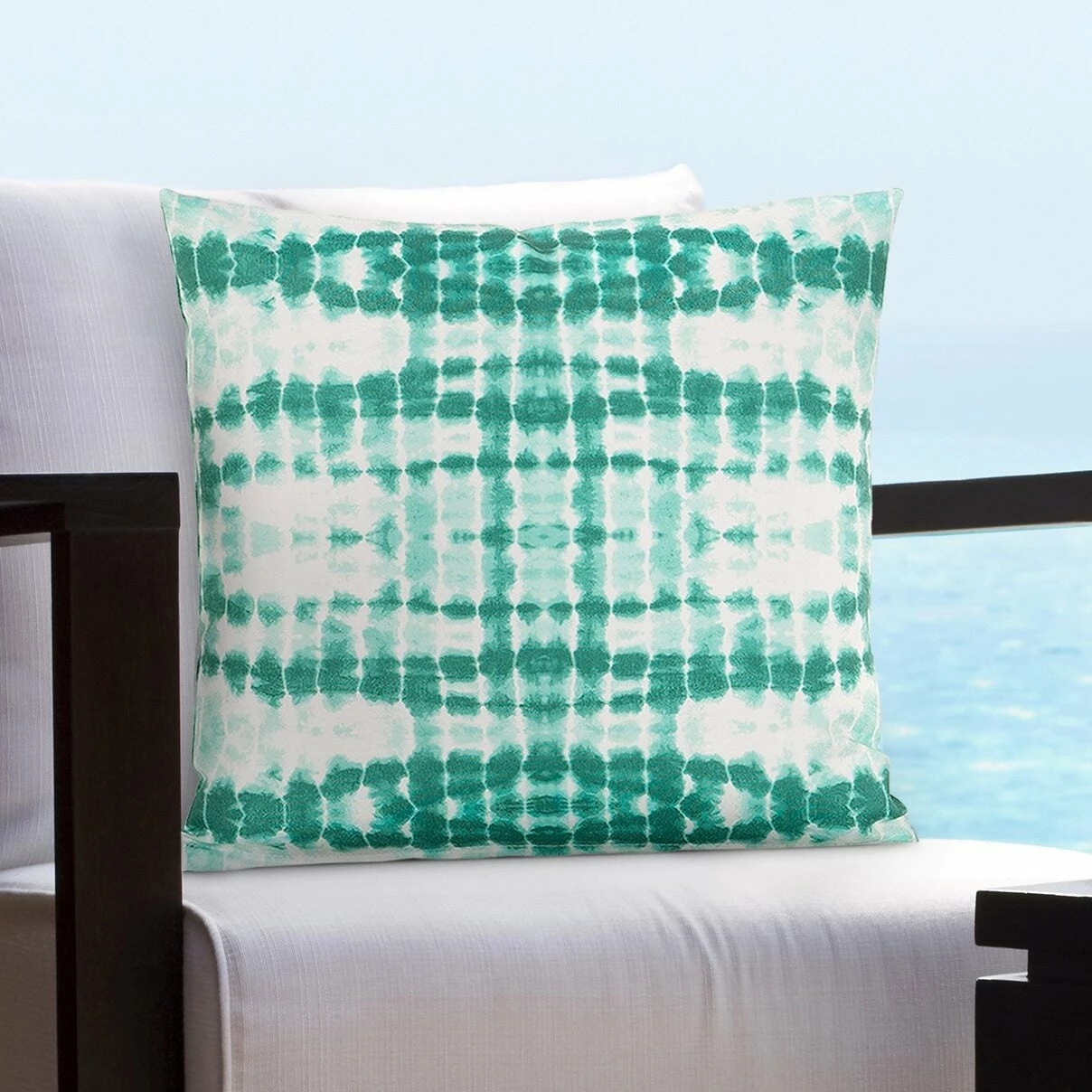 Bring the style outdoors with this Solarium Seascape tie-dye indoor/outdoor accent pillow by Siscovers. This accent pillow can beautifully transition through the seasons as it is UV/fade, mildew, water and stain resistant. Made durable and easy to clean with just soap and water. You can either brush off loose dirt and gently hose down, or for those stubborn stains, prepare a solution of 1 cup of bleach and 1/4 cup of mild soap (such as Woolite or Dawn dishwashing liquid) per gallon of clean water. The solution should be sprayed on (do not soak) the face of the fabric and gently brush. Do not keep the solution on the fabric for more than 2 minutes before rinsing with cool water.