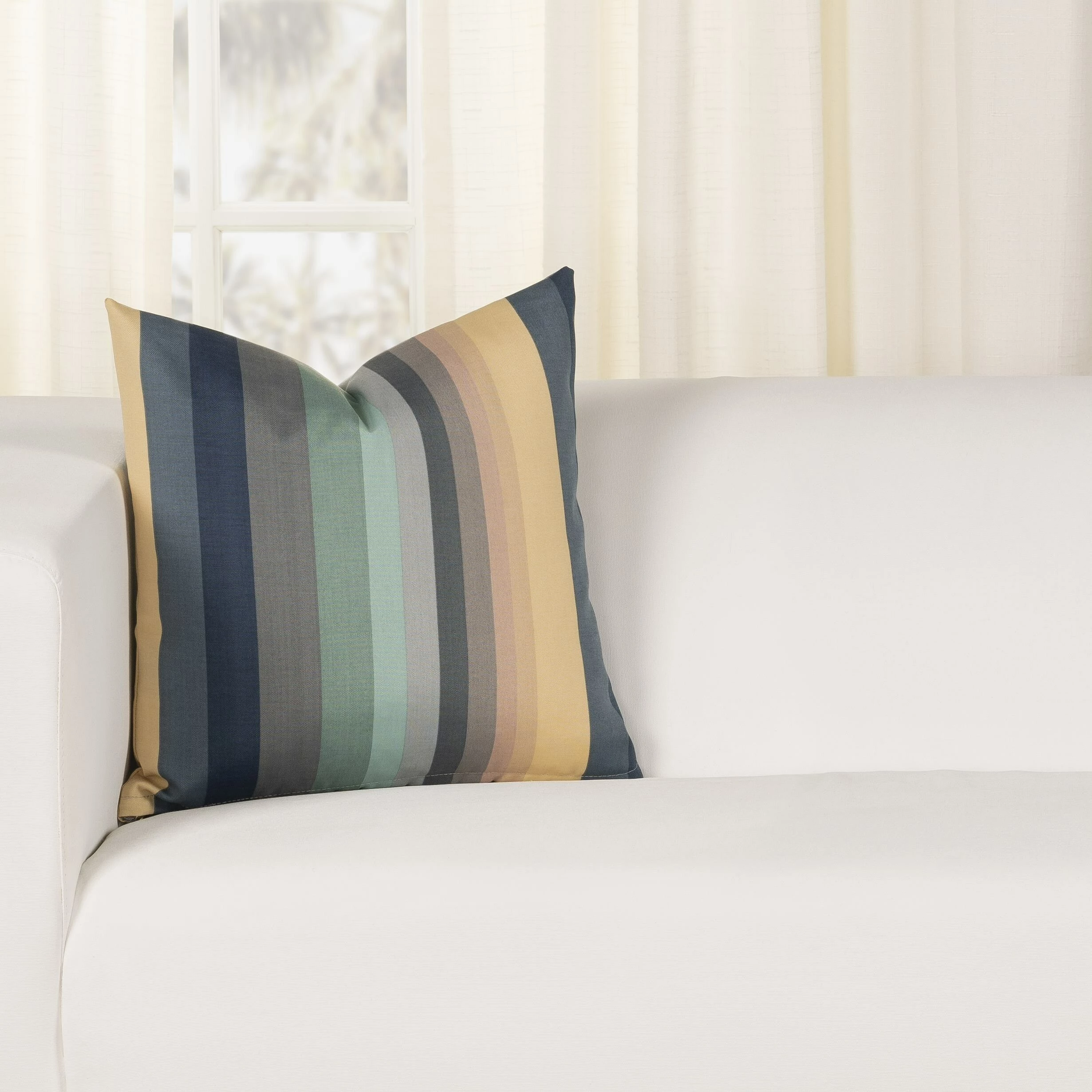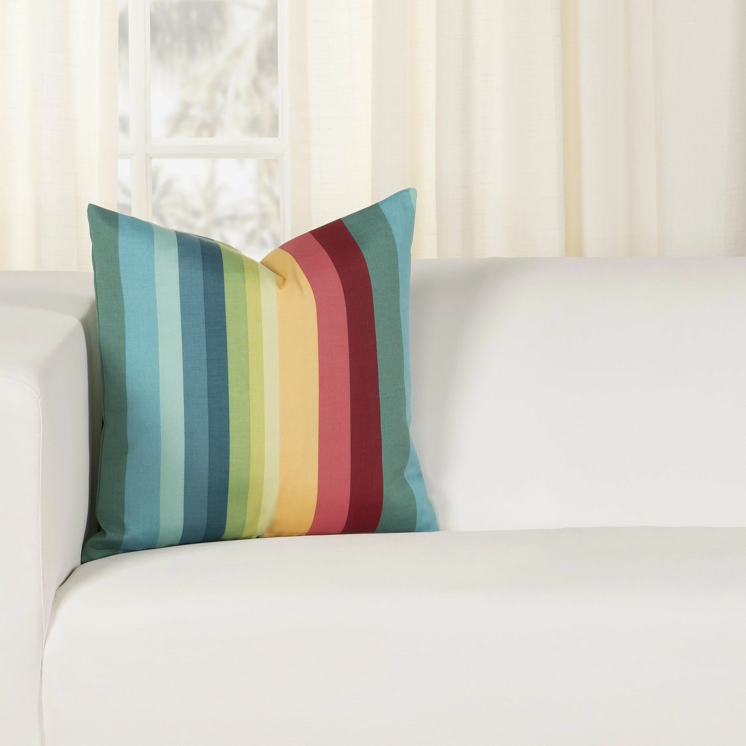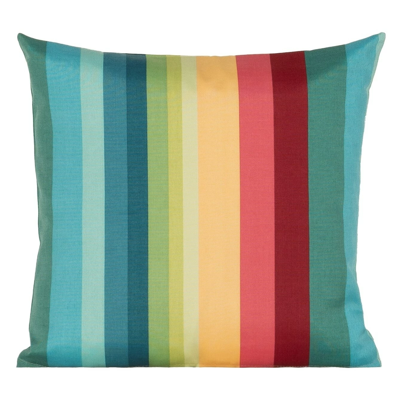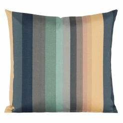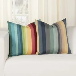 Bring the style outdoors with this Solarium Shore Stripe multi-color indoor/outdoor accent pillow by Siscovers. This accent pillow can beautifully transition through the seasons as it is UV/fade, mildew, water and stain resistant. Made durable and easy to clean with just soap and water. You can either brush off loose dirt and gently hose down, or for those stubborn stains, prepare a solution of 1 cup of bleach and 1/4 cup of mild soap (such as Woolite or Dawn dishwashing liquid) per gallon of clean water. The solution should be sprayed on (do not soak) the face of the fabric and gently brush. Do not keep the solution on the fabric for more than 2 minutes before rinsing with cool water.