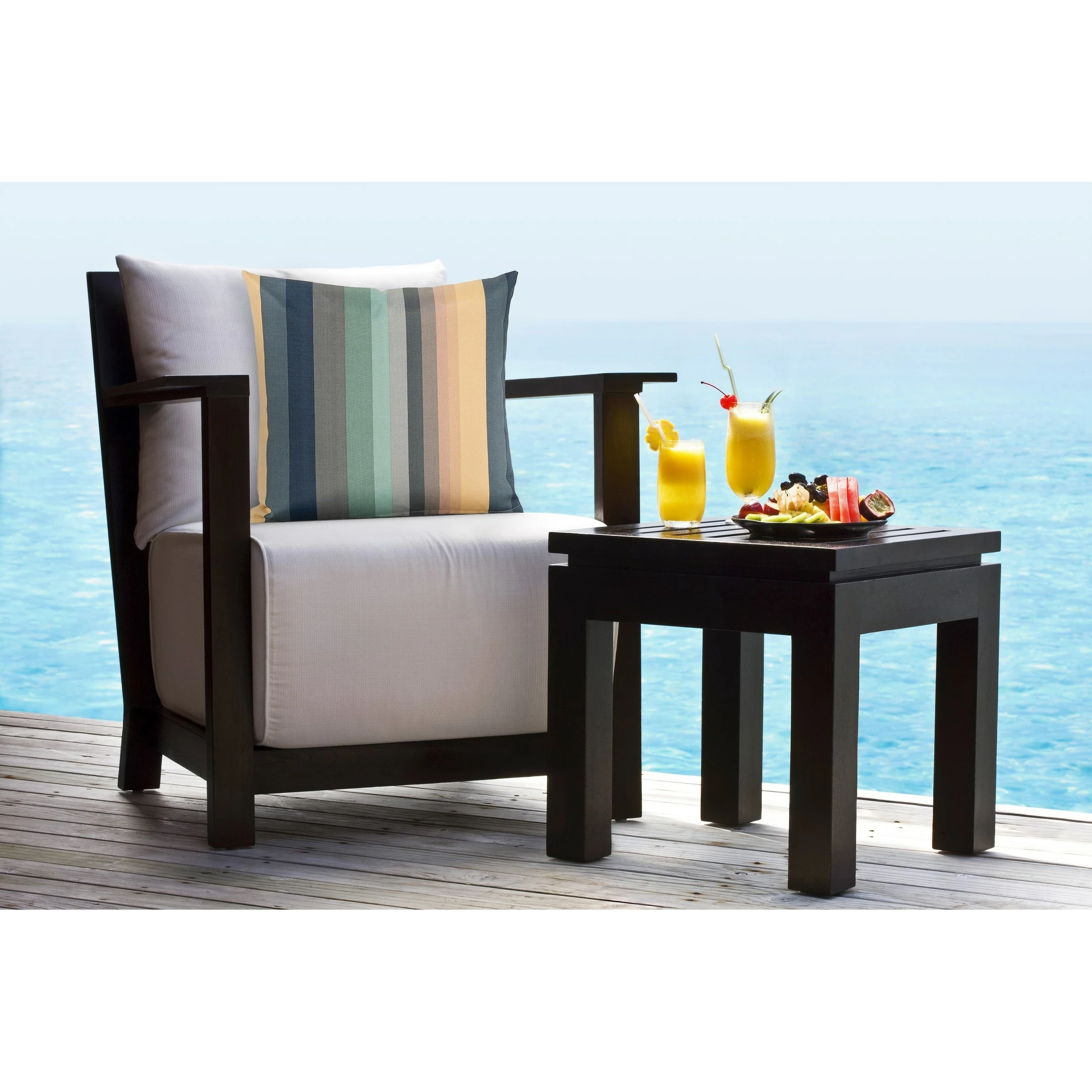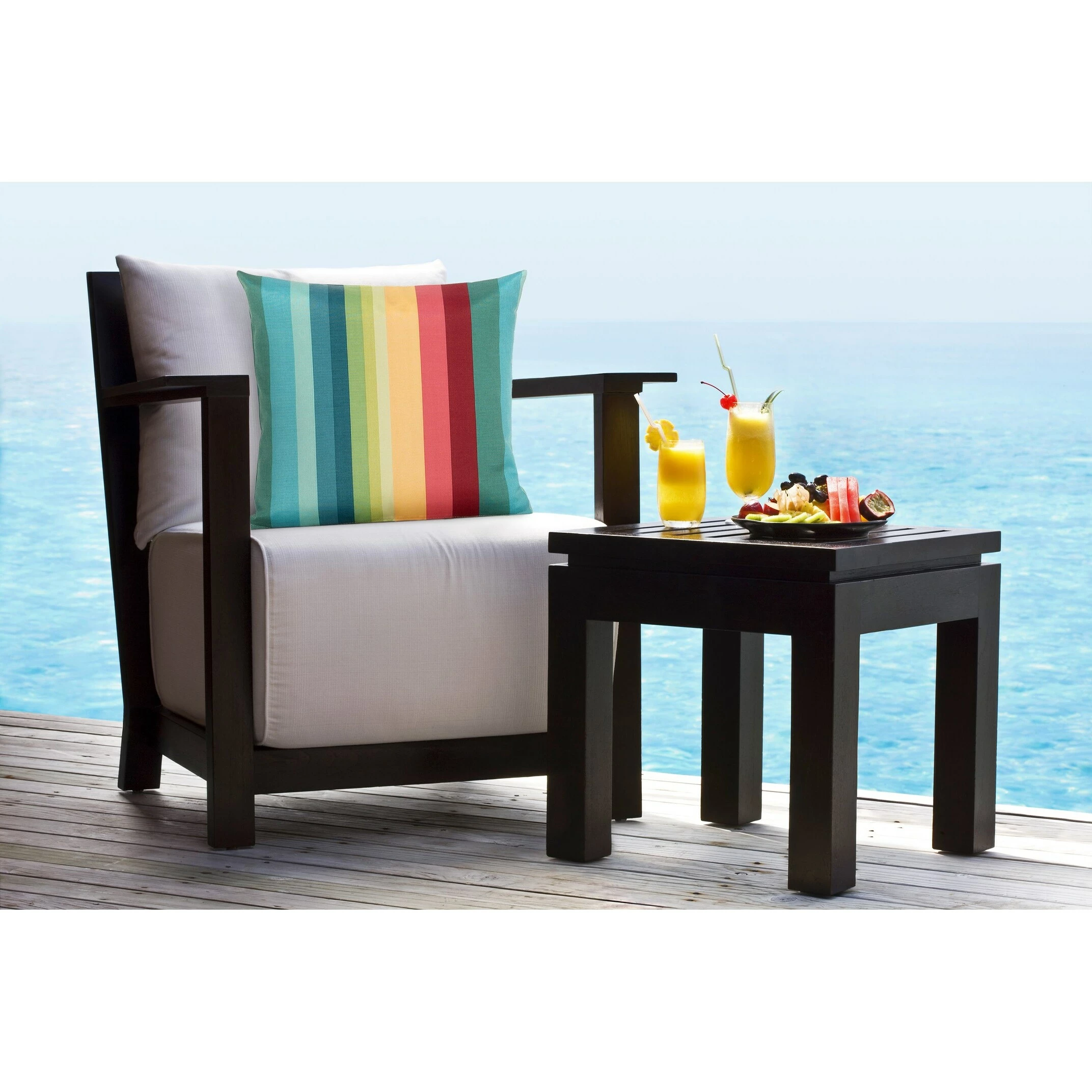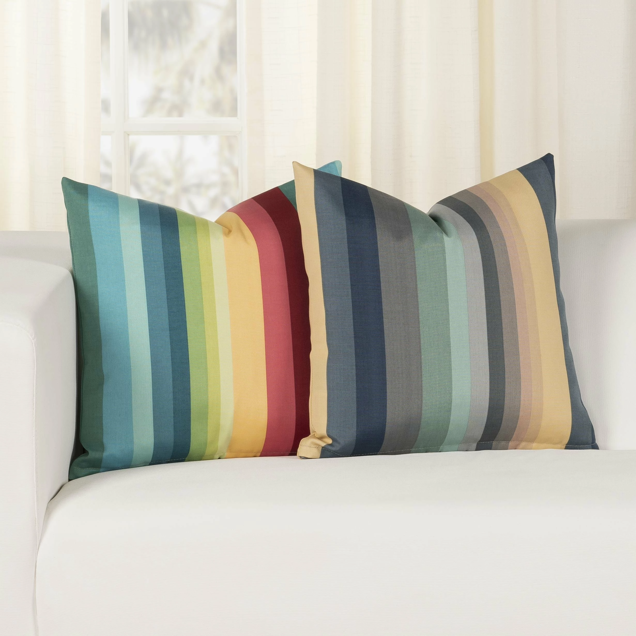 Bring the style outdoors with this Solarium Shore Stripe multi-color indoor/outdoor accent pillow by Siscovers. This accent pillow can beautifully transition through the seasons as it is UV/fade, mildew, water and stain resistant. Made durable and easy to clean with just soap and water. You can either brush off loose dirt and gently hose down, or for those stubborn stains, prepare a solution of 1 cup of bleach and 1/4 cup of mild soap (such as Woolite or Dawn dishwashing liquid) per gallon of clean water. The solution should be sprayed on (do not soak) the face of the fabric and gently brush. Do not keep the solution on the fabric for more than 2 minutes before rinsing with cool water.
