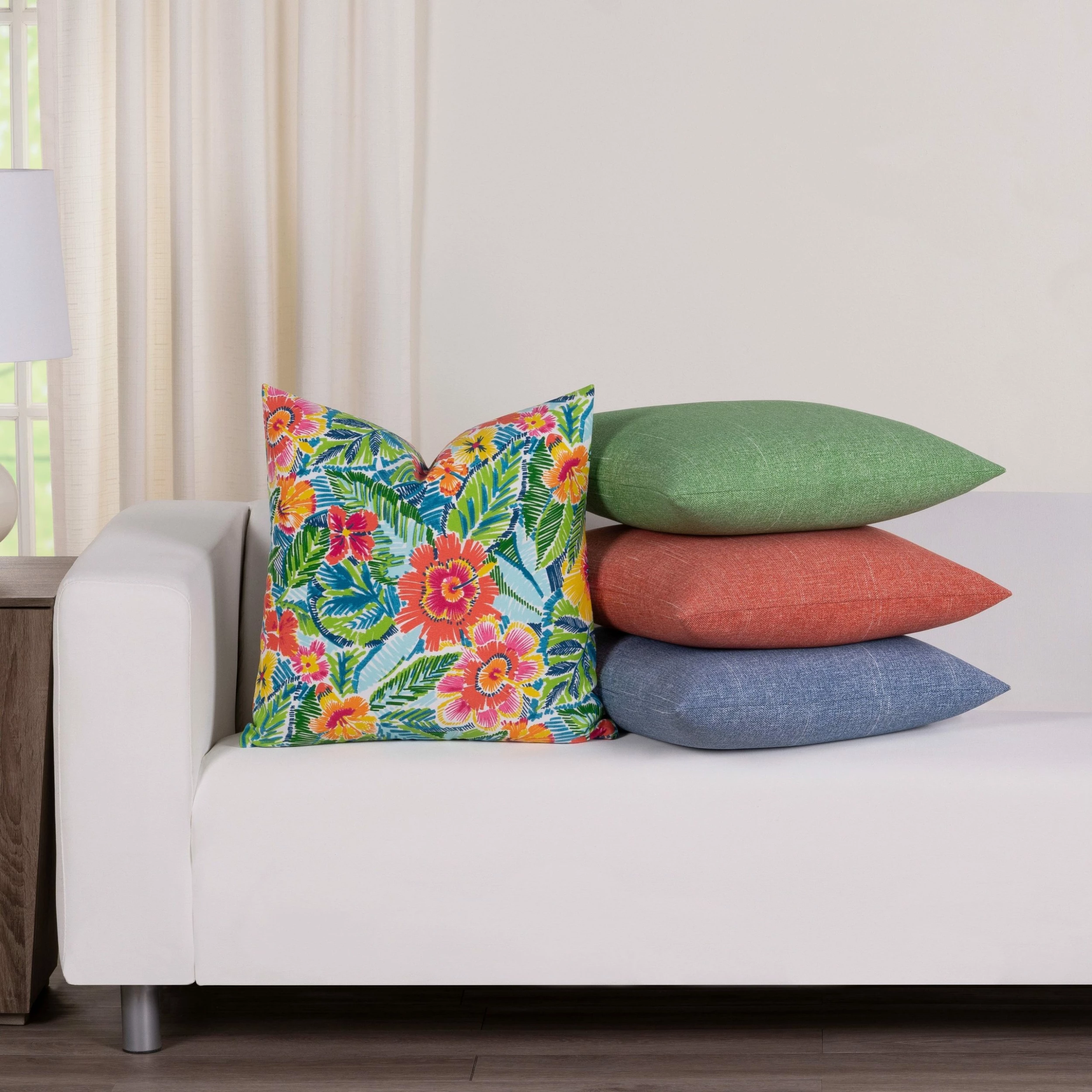 Bright greens, blues, oranges, pinks, and yellows in eye-catching tropical flowers will bring your space to life. Β Β