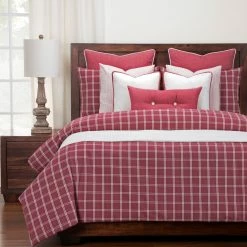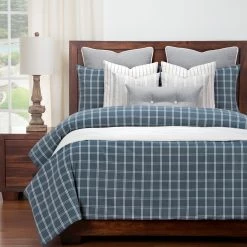 Bold checks in steely blue or crimson red turn this graphic centerpiece into an artful balance between earthy and chic. This 3 piece Modern Farmhouse Duvet and Shams Set features hidden zippers on both the duvet and shams for easy removal and care. This duvet is backed with a soft, brushed performance microfiber to ensure a comfortable night’s sleep. Manufactured in the USA, resulting in remarkable quality that is made to last and will keep your bedroom beautiful for years to come. This set includes one duvet cover and two matching shams (one in twin set). The Duvet has eight buttons inside to hold your comforter in place. The Siscovers Ultra Soft and Eco-friendly Down Alternative Comforter, sold separately, has corresponding button holes that line up perfectly with the hidden buttons inside.Duvet Dimensions:Cal King: 104 inches x 100 inchesFull: 86 inches x 88 inchesKing: 104 inches x 98 inchesQueen: 94 inches x 98 inchesTwin: 67 inches x 88 inches Sham Dimensions:Standard: 26 inches x 20 inchesQueen: 30 inches x 20 inchesKing: 36 inches x 20 inches