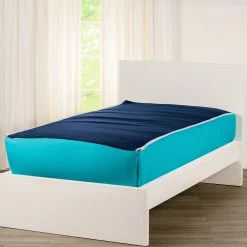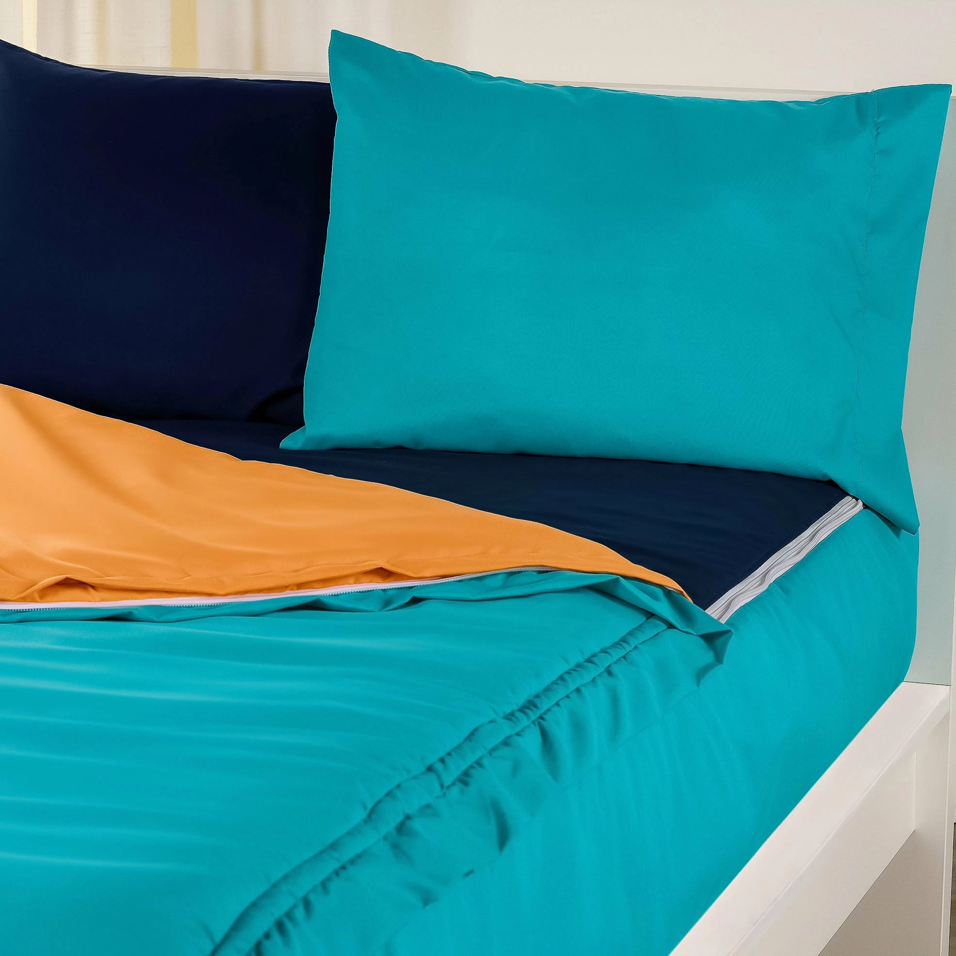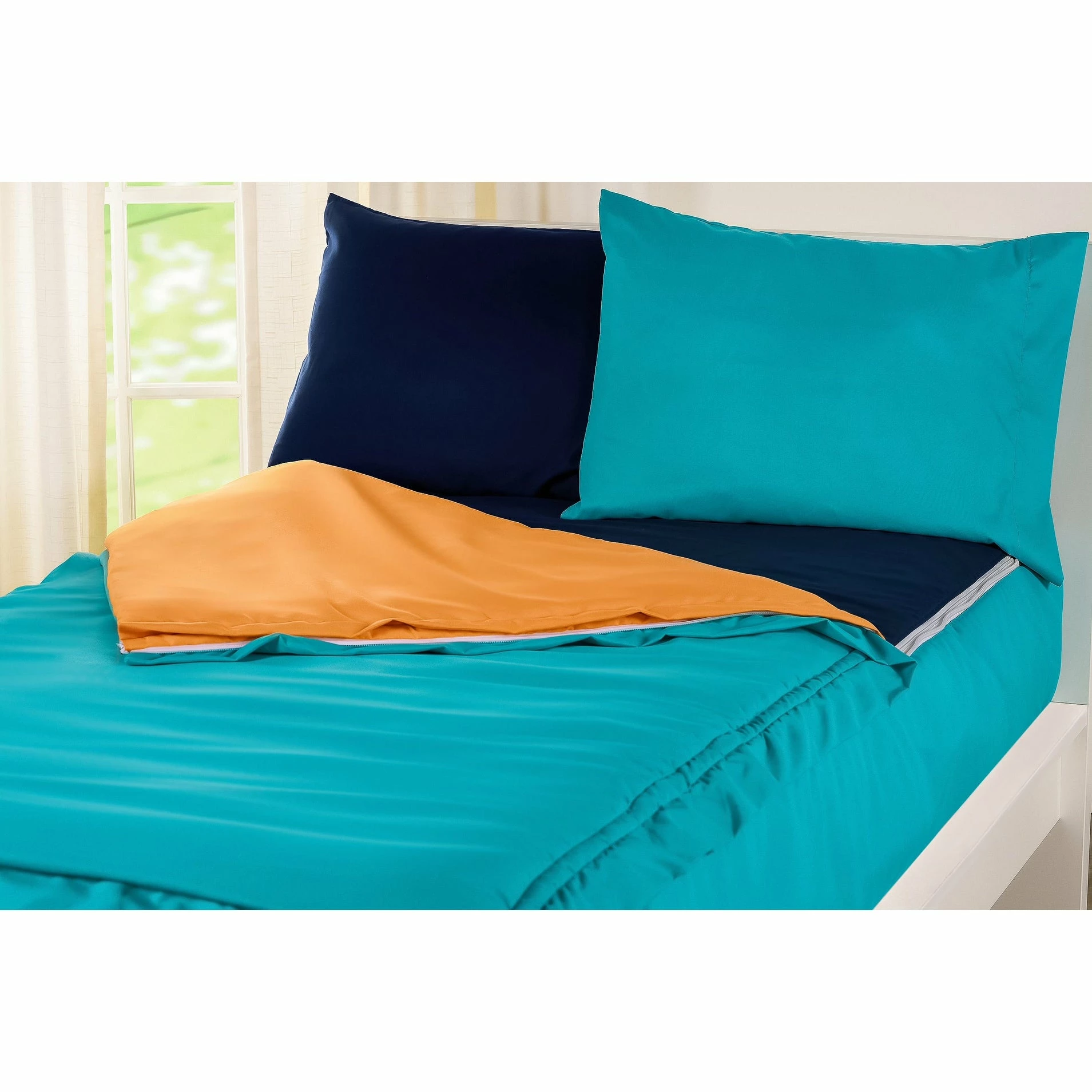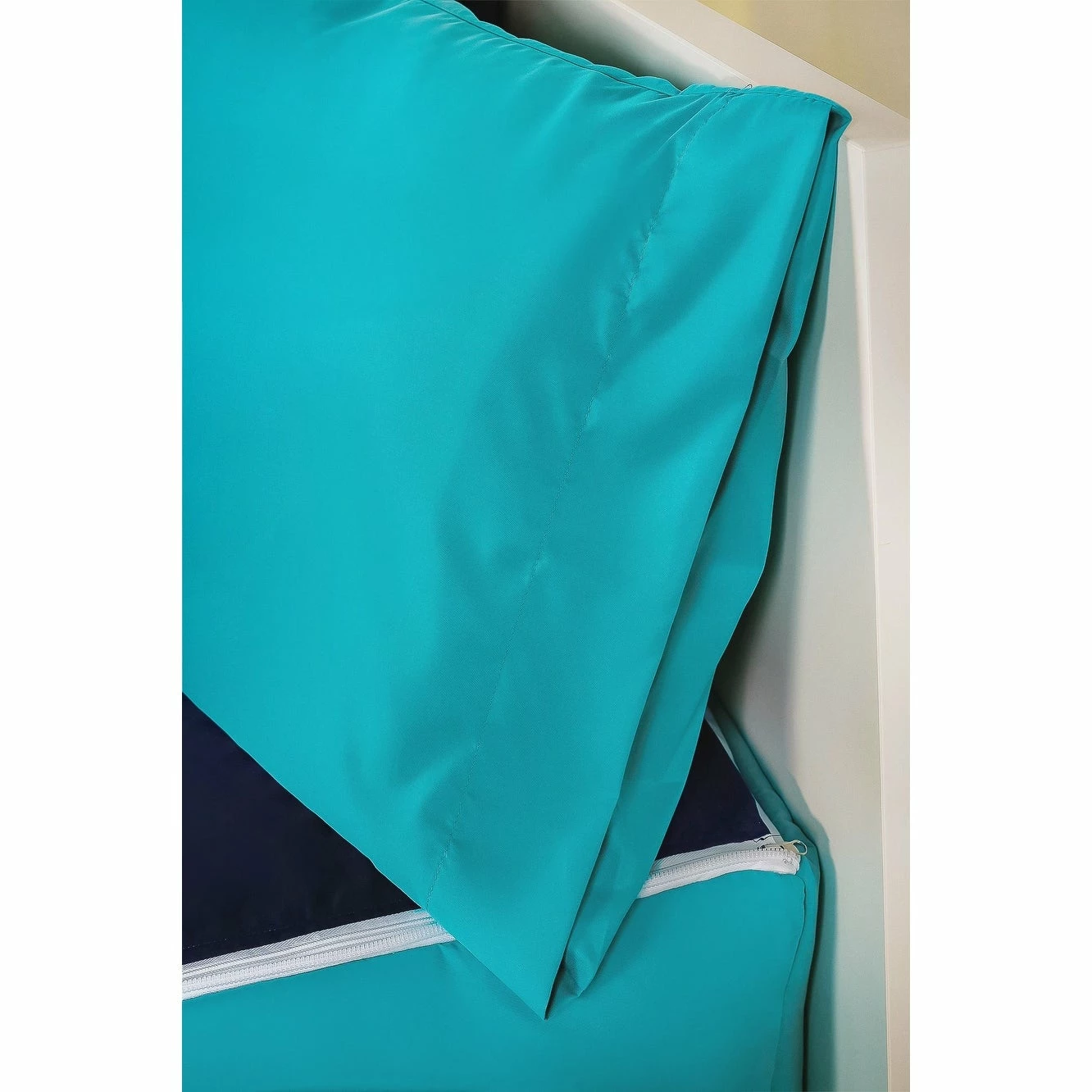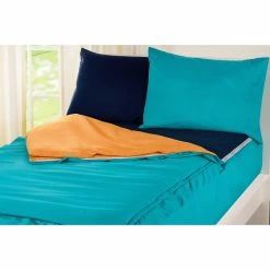 Update your child’s bed with the Turquoise & Orange Bunkie Deluxe from Siscovers. This all-in-one zipper bedding set has everything you need to send your little ones off to dreamland. The removable snuggly comforter is a perfect medium weight for all seasons. The zipper that runs along the perimeter of the bed make it so easy to make the bed, leaving it neat and tidy in a flash. The Bunkie Deluxe goes on easy just like a fitted sheet. It easily fits over your mattress with a heavy-duty elastic that goes all the way around the bottom of the mattress. The detachable comforter and bottom sheet easily zip on and off, making laundry a breeze. Under the removable comforter and sheet, you will find a built-in mattress protector that protects the top of the mattress from any spills or accidents. Also included you will find matching pillowcases to complete the look. These envelope style cases keep your pillows tucked away safely inside. This revolutionary product not only has everything you need in one easy package. It looks great, is fun to use and is available in both Twin and Full sizes. This product not only looks great on bunk beds but panel and platform beds too! Dimensions: Twin-size Bunkie Deluxe (39″ x 75″x 16″), Includes 2 standard pillow cases (26″ x 20″)Full-size Bunkie Deluxe (54″ x 75″ x 16″), Includes 4 standard pillow cases (26″ x 20″)