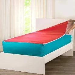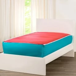 Update your child’s bed with the Turquoise and Yellow Bunkie Deluxe from Siscovers. This all-in-one zipper bedding set has everything you need to send your little ones off to dreamland. The removable snuggly comforter is a perfect medium weight for all seasons. The zipper that runs along the perimeter of the bed make it so easy to make the bed, leaving it neat and tidy in a flash. The Bunkie Deluxe goes on easy just like a fitted sheet. It easily fits over your mattress with a heavy-duty elastic that goes all the way around the bottom of the mattress. The detachable comforter and bottom sheet easily zip on and off, making laundry a breeze. Under the removable comforter and sheet, you will find a built-in mattress protector that protects the top of the mattress from any spills or accidents. Also included you will find matching pillowcases to complete the look. These envelope style cases keep your pillows tucked away safely inside. This revolutionary product not only has everything you need in one easy package. It looks great, is fun to use and is available in both Twin and Full sizes. This product not only looks great on bunk beds but panel and platform beds too! Dimensions: Twin-size Bunkie Deluxe (39″ x 75″x 16″), Includes 2 standard pillow cases (26″ x 20″)Full-size Bunkie Deluxe (54″ x 75″ x 16″), Includes 4 standard pillow cases (26″ x 20″)